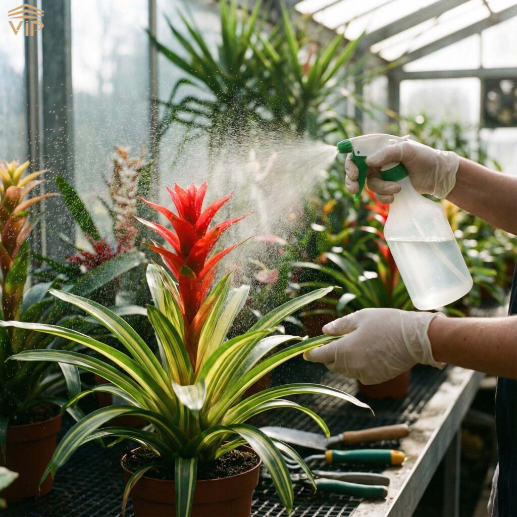 ۲. تنظیم آبیاری: آب را در مرکز برگها بریزید و اجازه دهید ۱ الی ۲ روز طول بکشد تا خشک شود. از آب بدون کلُر (آب جوشیده سردشده) استفاده کنید. در زمستان ، آبیاری را کاهش دهید.