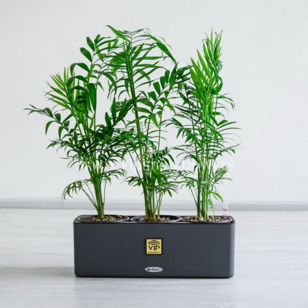 در فروشگاه VIP ما سه عدد گیاه شامادور کاملا سالم را در گلدانی شکیل گنجاندهایم. هر یک از این سه گیاه خودشان بهطور مستقل دارای گلدانی هستند که با خاکی با زهکشی مناسب پر شده است.