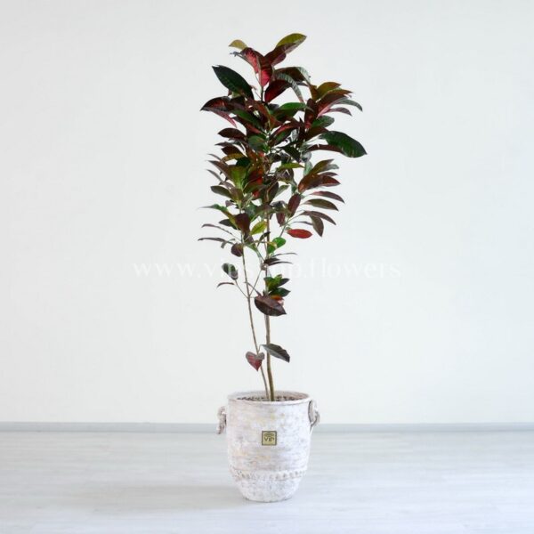 اگر میخواهید کروتون الوان بهطور کامل قد بکشد و خودنمایی کند، ما نمونهای از این گیاه را در فروشگاه VIP داریم که طول و عرض به اندازه 70 سانتیمتر و ارتفاع 150 سانتیمتر دارد. ابعاد این گیاه نشان میدهد که شما برای فضاهای بزرگ هم میتوانید از آن استفاده کنید؛ بیآنکه نگران باشید که کوچک است یا به چشم نمیآید.