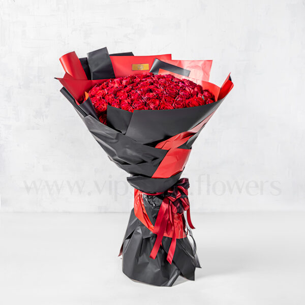 دسته گل رز قرمز بزرگ 100 شاخه، تصوریری از عشقی بیپایان