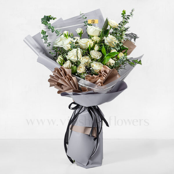 دسته گل طوسی با رز هلندی