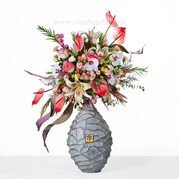 از دیگر ویژگیهای باکس گل نشاط، گل آرایی خلاقانه و انتخاب گلهای رنگارنگ و متنوع است که این محصول را به یک هدیه فوق العاده، تبدیل کرده است. هارمونی گلهای سفید و صورتی با رنگ طوسی باکسشان، انعکاسی از آرامش و زیبایی را در خود جای داده اند و علاوه بر انتقال نشاط و زیبایی، دل عزیزانتان را نیز به شادی و آرامش وصف نشدنی، دعوت میکنند.