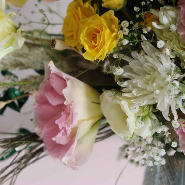 این باکس گل جذاب به نحوی طراحی شده که از ۳۶۰ درجه دارای نمایی شیک، جذاب و منظم است. نظم این باکس گل زیبا باعث شده است یکی از بهترین پیشکش هایی باشد که می تواند روی هر میزی بدرخشد و حضور آن در هر جایی به خودی خود لبخندی عمیق را به بیننده منتقل میکند. گویی گل ها به گرمی به استقبال آمده اند .