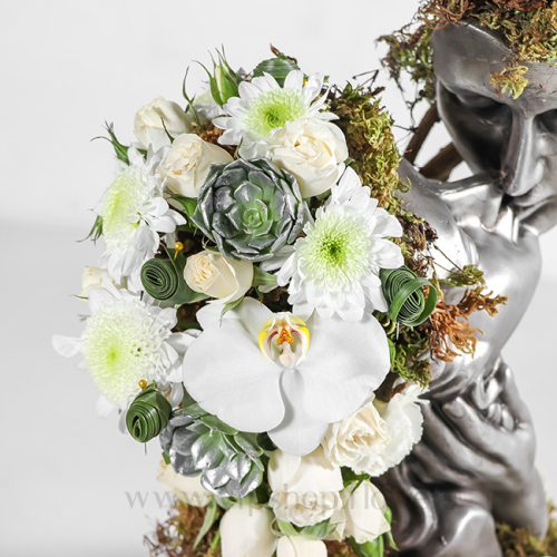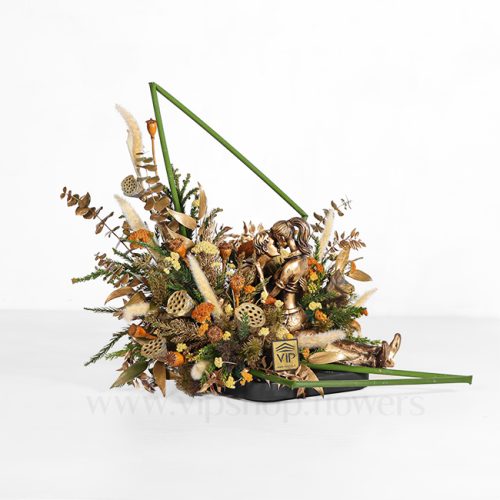 این گل رومیزی با تزیین بسیار شیک و دل انگیز یکی از مناسب ترین گزینه ها برای مجالس ترحیم و تسلیت و ابراز همدردی شما با بازماندگان مرحوم است. این گل رومیزی زیبا دارای 2 شاخه گل رز هلندی، 20 شاخه گل داوودی، 3 شاخه گل آنتریوم، 20 شاخه گل میخک مینیاتوری و 5 شاخه گل آلسترومریا به همراه برگ‌ها و تزئینات لازم تزیین می گردد که جلوه ای خاص برای هر مجلسی است.