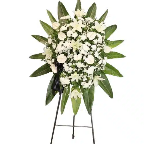 این پایه گل ترحیم شیک و رسمی، انتخابی است که با وقار، جایگاه والای شما و عزیزانتان را در مراسم یادبود منعکس میکند.