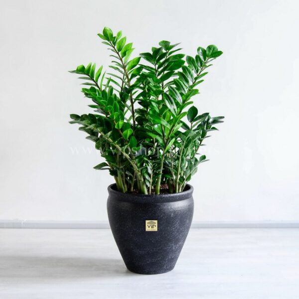 گلدان آپارتمانی زاموفیلیا بزرگ با گلدان مشکی خاص