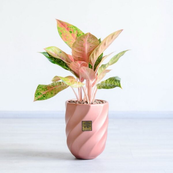 گلدان آپارتمانی آگلونما صورتی، از چشم نوازترین گیاهانِ خانواده شیپوریان است. این گیاه تماشایی، بومی جنگلهای گرمسیری شرق و جنوب شرقی آسیا است. گلدان آپارتمانی آگلونما با نام گیاه همیشه سبز چینی نیز شناخته میشود و طرفداران زیادی را در سراسر دنیا به خود اختصاص داده است. از دیگر ویژگیهای خاص این گیاه همیشه سبز، نگهداری بدون زحمت، ماندگاری بالا و سازگاری با نور کم است. گرد هم آمدن تمامی این مشخصات برجسته، این گیاه را پیوسته در صدر فهرست گیاهان آپارتمانی برتر قرار داده است.