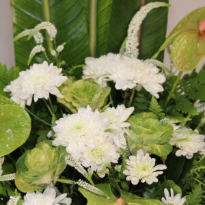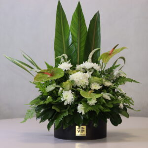 جعبه گل ترحیم شماره 16 با تزیین بسیار شیک و دل انگیز یکی از مناسب ترین گزینه ها برای ابراز همدردی شما با بازماندگان مرحوم است. این جعبه گل زیبا دارای 60 شاخه گل داوودی و 5 شاخه گل رز به همراه تزیینات و برگ های لازم را داراست که جلوه ای خاص برای هر مجلسی است. این گل همدردی روبان هایی به رنگ سیاه و سفید به قطر ۴ سانتی متر را در بر گرفته و یکی از بهترین پیشکش هایی است که می توان برای تسلای خاطر به عزیزان اهدا نمود.