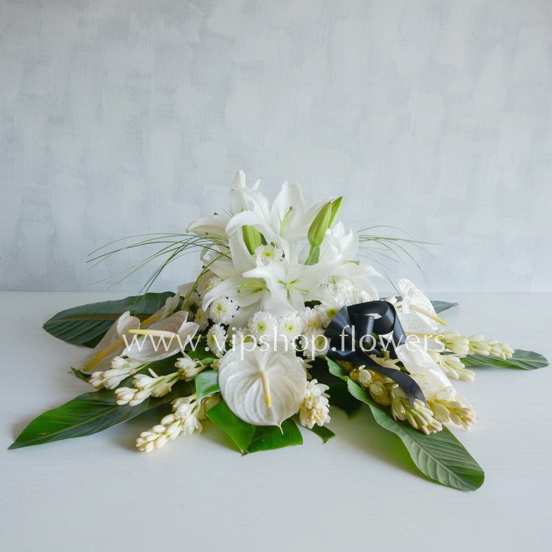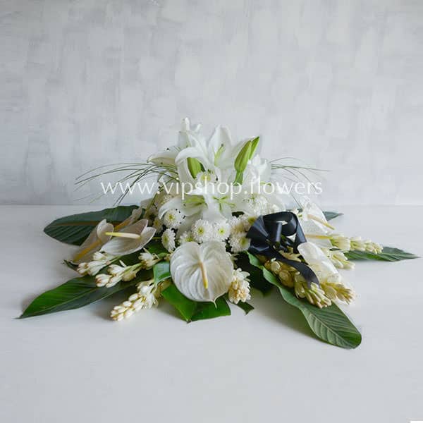 گل رومیزی ترحیم شماره 22 با تزیین بسیار شیک و دل انگیز یکی از مناسب ترین گزینه ها برای ابراز همدردی شما با بازماندگان مرحوم است. این گل رومیزی ترحیم زیبا دارای 5 شاخه آنتریوم، ۹ شاخه گلایل، 25 شاخه گل داوودی و 5 گل اورینتال به همراه تزیینات و برگ های لازم را داراست که جلوه ای خاص برای هر مجلسی است. این گل همدردی روبان هایی به رنگ سیاه و سفید به قطر ۴ سانتی متر را در بر گرفته و یکی از بهترین پیشکش هایی است که می توان برای تسلای خاطر به عزیزان اهدا نمود.