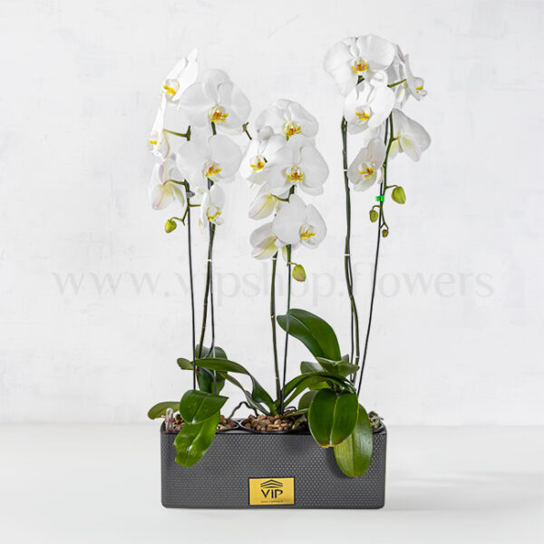 هر چه از گل ارکیده سفید تعداد بیشتری داشته باشید واضح است که زیبایی و بوی خوش بیشتری را هم در محیط پیرامون خود خواهید داشت. پک گلدان ارکیده سفید فروشگاه VIP با تعداد شاخهها و ابعادی که دارد طوری طراحی شده تا بهقدر کافی حس کنید زیبایی و عطر این گیاه در نقطهنقطه اطرافتان حضور دارد.